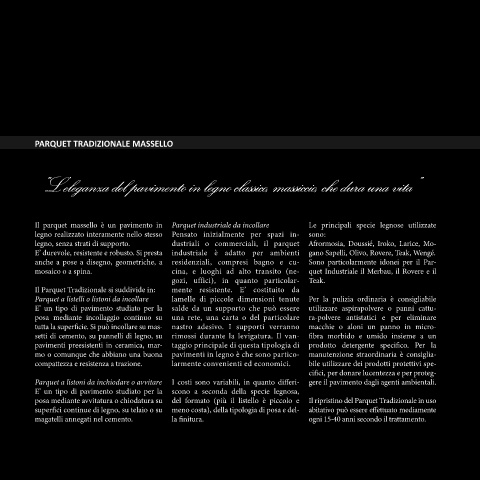 “L’eleganza del pavimento in legno classico, massiccio, che dura una vita”