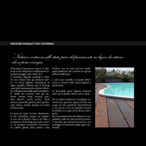 Il Decking è il parquet per esterni. E’ adat- livellato, ove sia stata prevista un’ade-